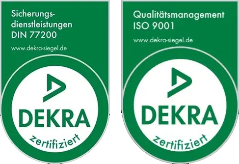 Der Golden Eye Sicherheitsdienst ist DEKRA-geprüft nach DIN ISO 9001 – ein Nachweis der hohen Qualität unserer Arbeit. Außerdem hat uns die DEKRA eine Auszeichnung nach DIN 77200 verliehen, was die enorme fachliche Kompetenz unseres Sicherheitsdienstes belegt.